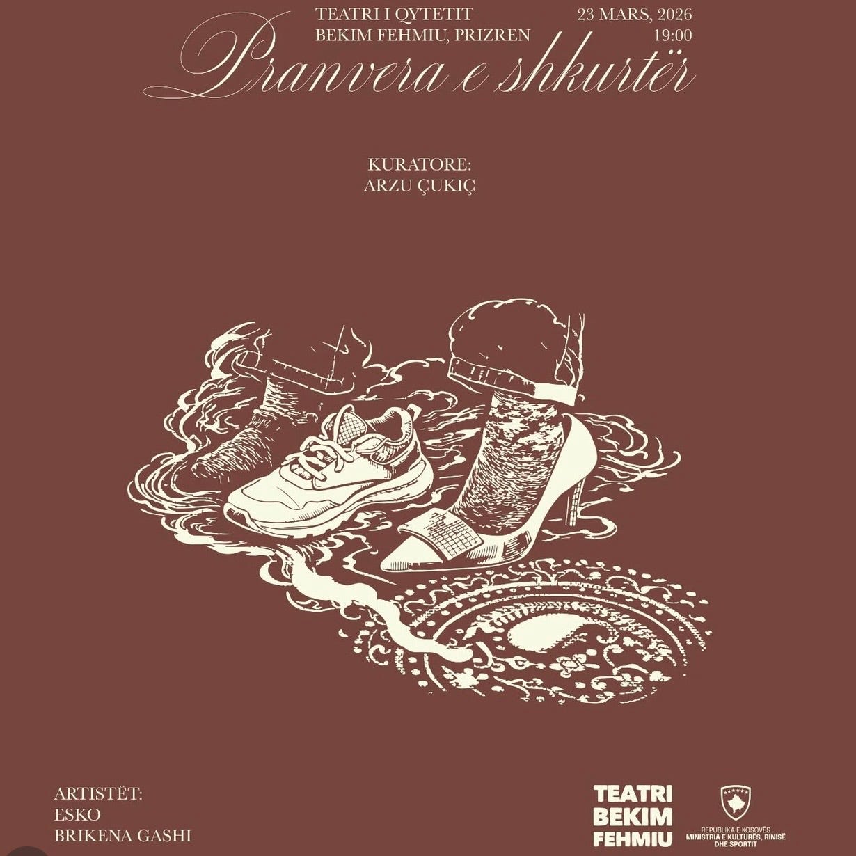 Një ekspozitë intriguse nga artistet Brikena Gashi dhe Esko, e kurume nga Arzu Çukiçi e titullume “Pranvera e shkurtër” e ka moton kontempluse “Disa vajza nuk e jetojnë kurrë pranverën e tyre… ajo u ndërpritet shumë herët.” Ekspozita sjell reflektim mbi realitetin e martesave të hershme dhe fuqinë e edukimit për ndryshim. Temë e nevojshme dhe artiste që premtojnë, e ju mundeni me pa ekspozitën dhe me u taku me autoret sonte 23 Mars, nga ora 19:00 te Teatri i Qytetit “Bekim Fehmiu”, Prizren.