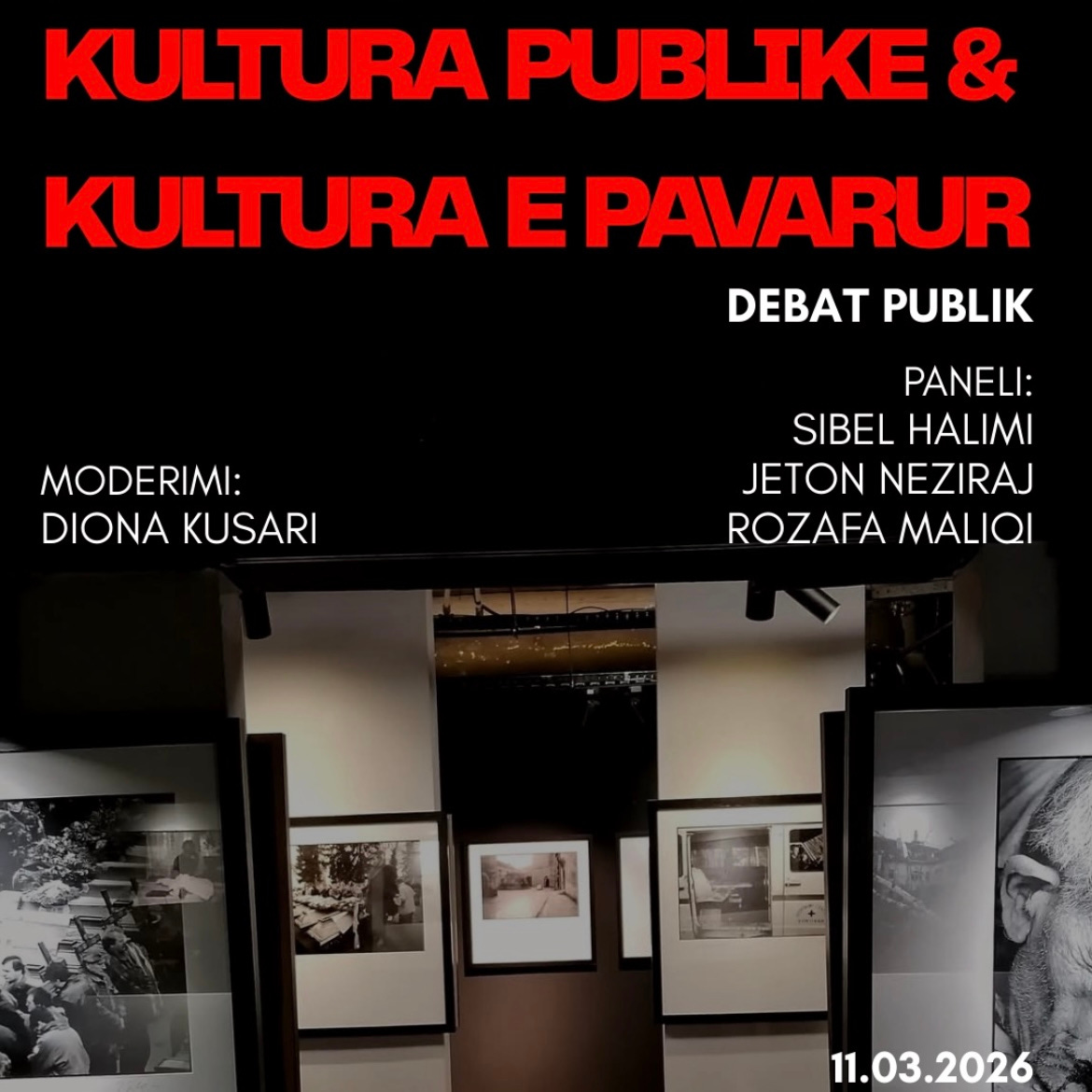 Seria e debateve të kulturës në kuadër të programit “Fuqizimi i Kulturës”, po vazhdon me temën “Kultura Publike dhe Kultura e Pavarur”, në kafe-galerinë e njoftun “Hani i Dy Robertëve”. Pjesëmarrës janë Sibel Halimi, Jeton Neziraj, Rozafa Maliqi, moderume nga Diona Kusari. Data osht me 11 Mars, nga ora 18:00. Debati e ka pikënisje diskutimit se çfarë osht marrëdhënia mes kulturës publike, që funksionon me resurse dhe financim shtetnor (muze, teatër, galeri, biblioteka, salla koncertesh etj.) dhe kulturës së pavarun gjithnjë e më vibrante, ama që nuk ka burimet e garantume financiare.
